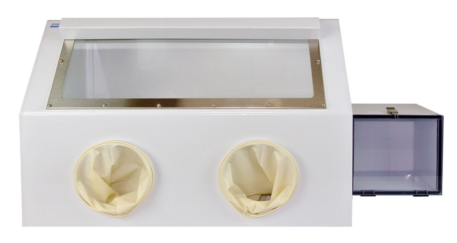 This economy acrylic glove box is ideal for work needing a sealed chamber or controlled atmosphere environment. It is useful as a dry box, glove box, dust box or draft-free enclosure for tissue culturing.